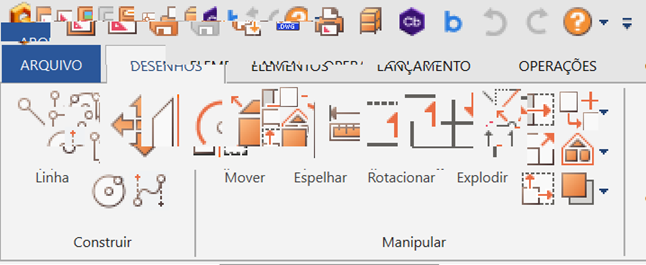 Em algumas configurações específicas, os comandos do AltoQi Builder podem apresentar tamanho incompatível com o seu conteúdo ou pode ocorrer da visualização dos comandos na tela estar desconfigurada, como nos exemplos exibidos a seguir: