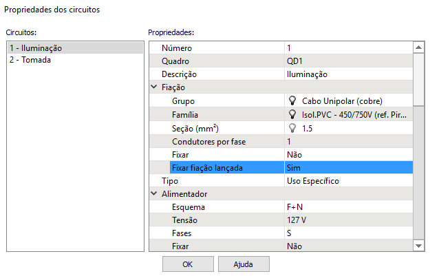 Caso novos pontos sejam lançados neste circuito deve-se verificar a fiação lançada e, se necessário, alterar novamente a opção Fixar fiação lançada para Não.