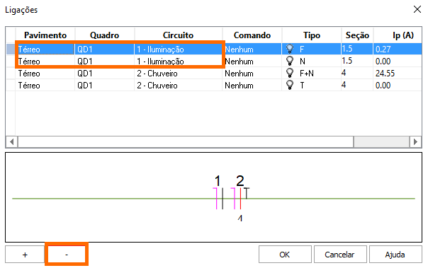 Será aberto o diálogo Ligações, para remover os fios deve-se: