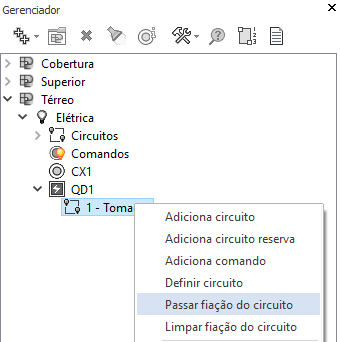 Na janela Gerenciador expandir o pavimento onde encontra-se o circuito;