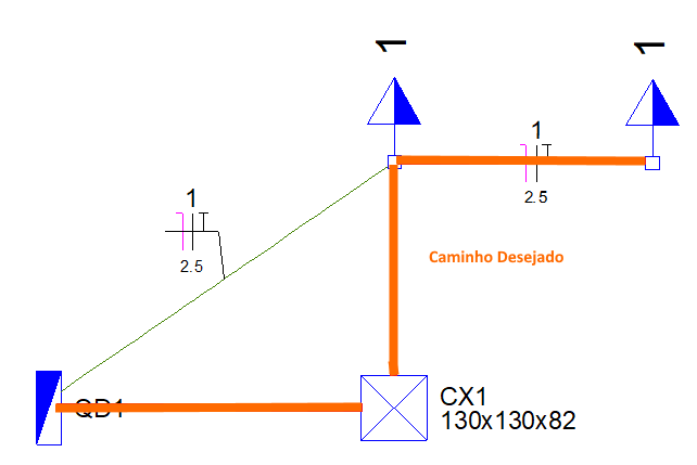 Para forçarmos a fiação a realizar o caminho desejado será necessário apagarmos o(s) conduto(s) por onde a fiação passa mas não desejamos que passe e processar o projeto.