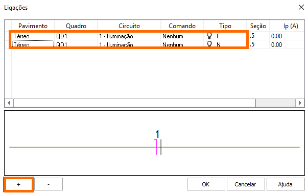 Será aberto o diálogo Ligações, para adicionar os fios deve-se: