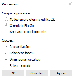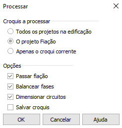 Após realizar o lançamento dos pontos, definir circuitos e lançar os eletrodutos, chega a hora de inserir a fiação do projeto. Usualmente, o traçado da fiação é feito de forma global, utilizando-se o comando Processar, habilitando a opção Passar fiação, que tem a função de incluir todos os condutores necessários aos pontos definidos no projeto, com base nos caminhos detectados pelos condutos lançados entre os pontos.