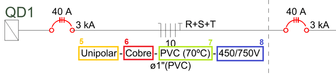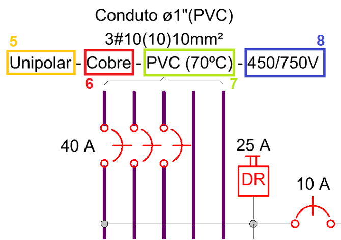 - informações sobre o condutor do circuito (tipo, material, isolação, tensão);