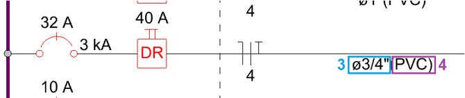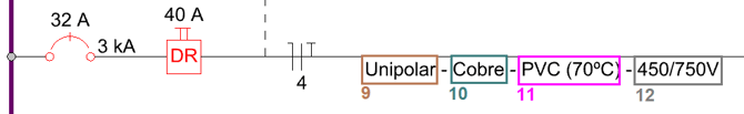 - Interruptor diferencial-residual ("IDR"), protegendo o circuito (incluído quando o esquema escolhido na janela de propriedades do quadro for "Por circuito" ou "Por grupo de circuitos" e a propriedade "IDR" na propriedade do circuito for "Por grupo" ou "Individual");
