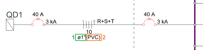 - As informações nesta configuração aparecerão nos textos dos diagramas multifilares de seu projeto, conforme abaixo: