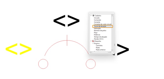 A partir da atualização 2025-11, para a versão Assinatura, o campo curva de atuação está disponível para personalização das simbologias de disjuntores. Para incluir este campo na simbologia é necessário criar uma simbologia personalizada e, ao incluir os campos na simbologia, clicar sobre a informação Curva de atuação.