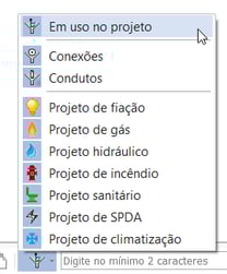 - Quadro associado: são representados os dados referentes ao circuito do quadro, de forma similar a um circuito terminal, mas usando uma convenção de cor diferente para a descrição do circuito.