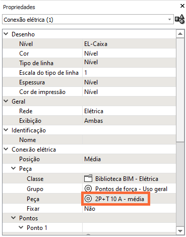 Observação: Atente-se para o subtipo de ponto selecionado nas Propriedades da peça lançada (guia Elementos, grupo Acessar, comando Propriedades) que deve ser Tomada 2P+T.