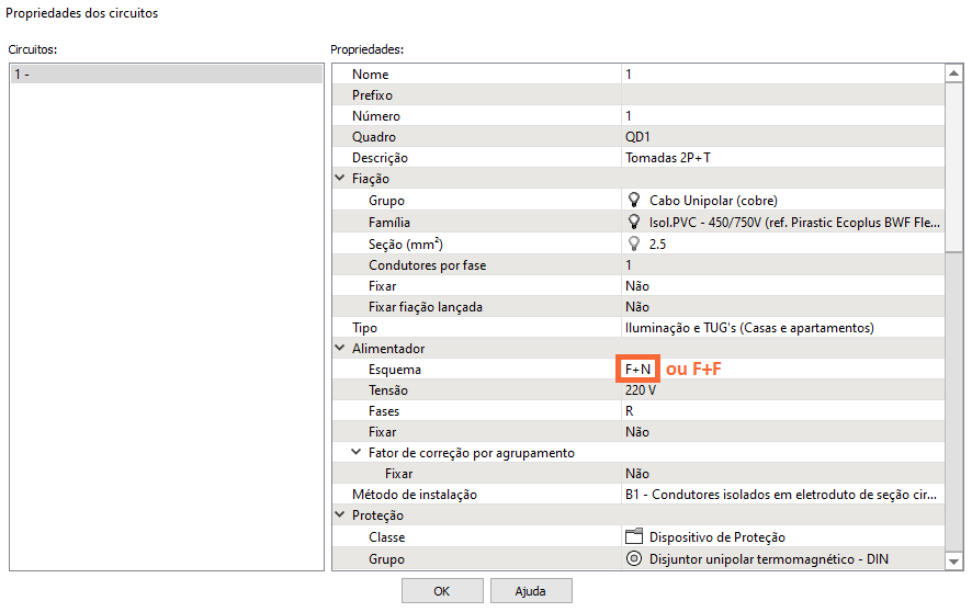 - No diálogo Propriedades dos circuitos determine as propriedades desejadas;