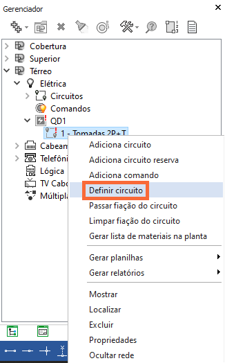 - Na janela Gerenciador, clique com o botão direito do mouse no circuito recém criado e selecione Definir Circuito;