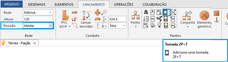- Ainda na guia Lançamento, acesse o grupo Pontos, botão Tomada 2P+T;