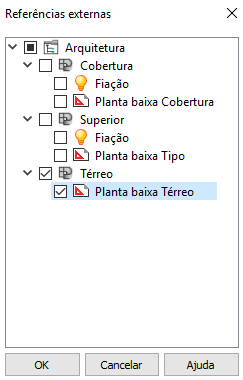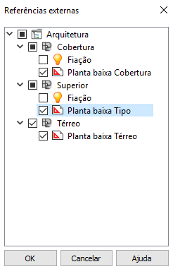 Observação: Outra vantagem de utilizar Referências externas é que ela elimina a necessidade de inserir uma arquitetura por pavimento. Em pavimentos tipo, por exemplo, basta inserir a arquitetura em um pavimento Tipo e habilitar a referência externa para os demais pavimentos.