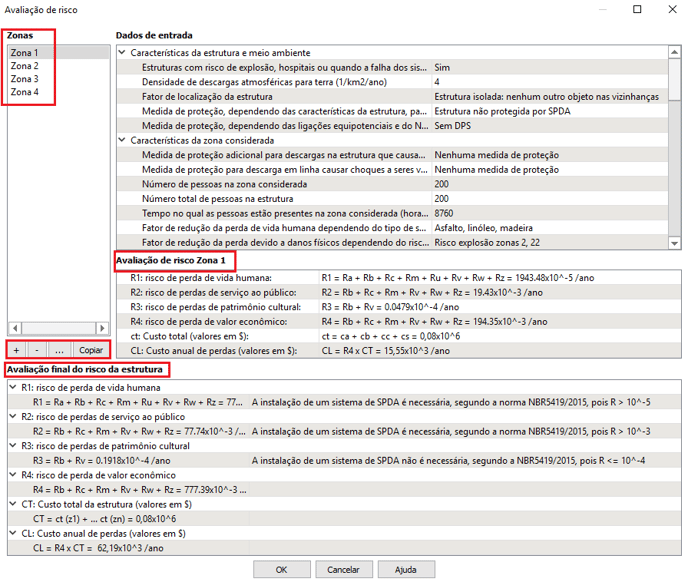 De acordo com o item 6.7 da NBR 5419-2:2015 a estrutura pode ser constituída por uma zona única ou ser dividida em zonas cada uma com características homogêneas, permitindo avaliar cada componente de risco mais isoladamente.