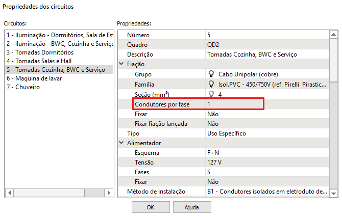 Em nosso exemplo, o circuito 5 utiliza apenas um condutor por fase, portanto n será 1.