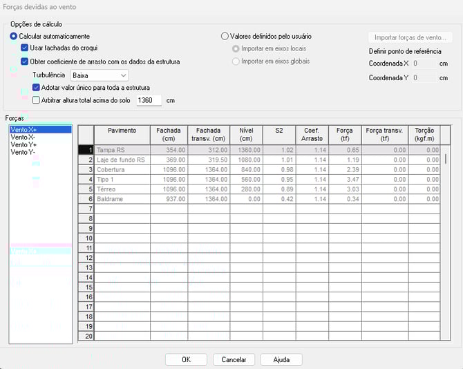 Com isto, são definidas todas as configurações de projeto no tocante ao vento.