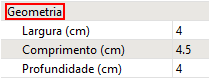 - Em Geometria preencha as dimensões da peça (valores utilizados na visão 3D);