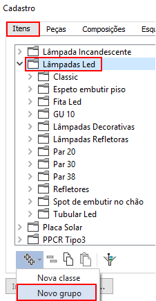 - Selecione a Classe desejada, neste exemplo Lâmpadas Led;