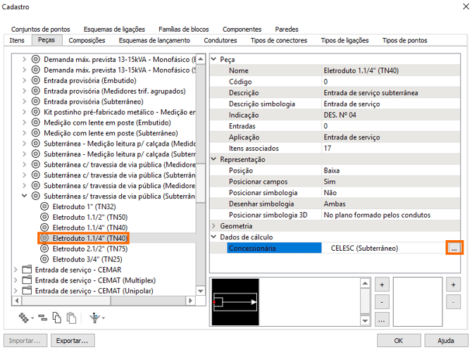Ao cadastrarmos a peça do alimentador predial será necessário definir a concessionária. O procedimento para criação das tabelas de dimensionamento do ramal de entrada será apresentado a seguir.