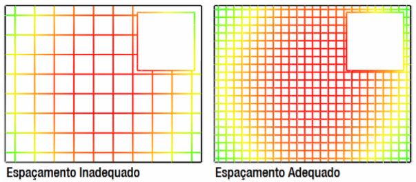 - Lajes nervuradas, pré-moldadas ou treliçadas: O espaçamento será definido automaticamente, tomando como base a disposição das nervuras e dimensão do bloco de enchimento utilizado, sendo que cada nervura da laje irá corresponder à uma barra da grelha.