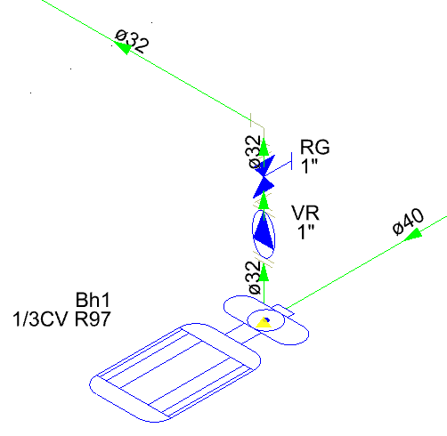 - Agora dê um duplo clique sobre a indicação do diâmetro da tubulação que está ligada à bomba e altere para 32 mm;
