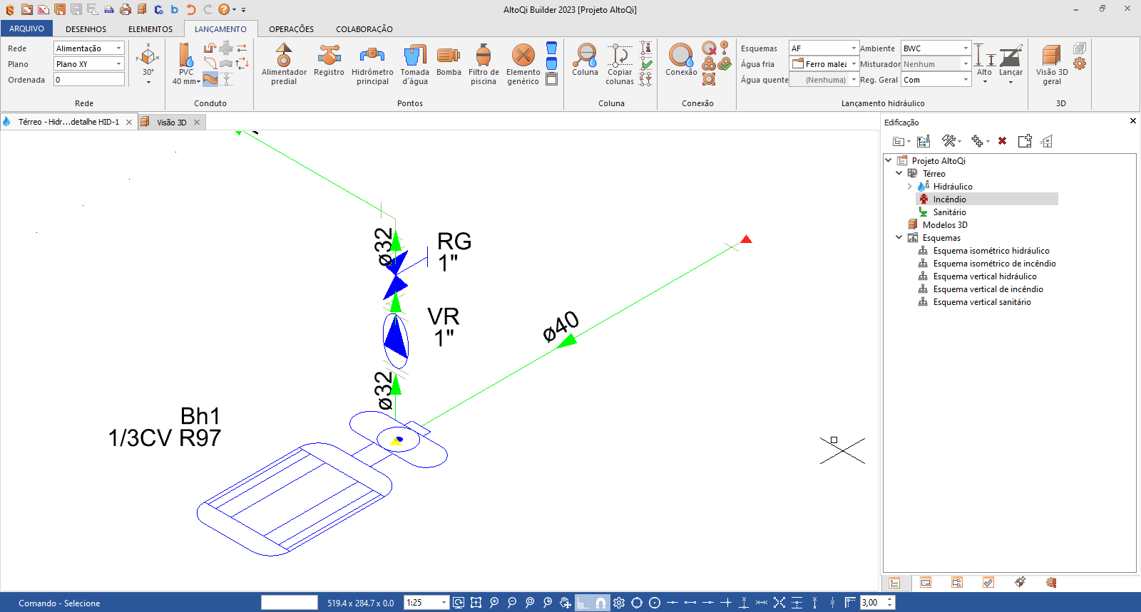 Observação: O lançamento de uma bomba hidráulica no AltoQi Builder é abordado no artigo Como lançar uma bomba hidráulica?.