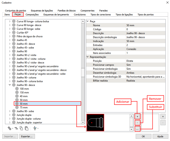 , para exibir apenas peças usadas no projeto corrente, ou exibir apenas conexões e/ou condutos e ainda, exibir apenas peças de uma ou mais disciplinas de projeto. Caso a peça desejada corresponda a uma peça nativa do programa, antes de alterar a simbologia é necessário criar uma cópia da peça.