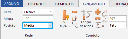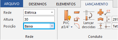 - Acesse a guia Lançamento, grupo Rede e defina a Posição - Baixa;