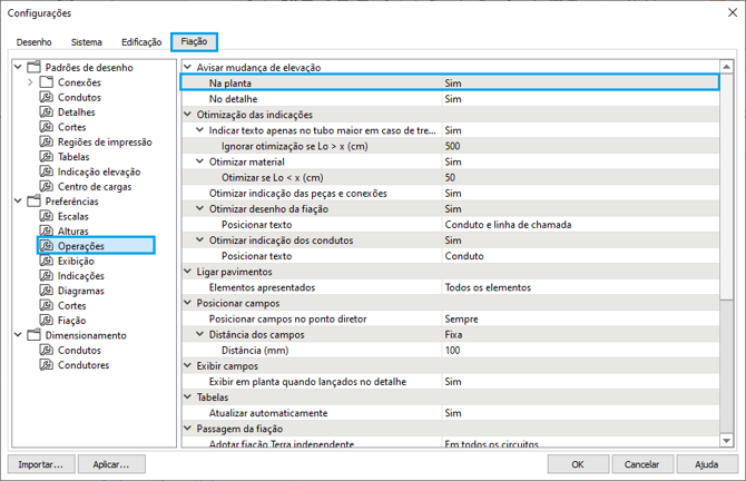 - Altere a opção Avisar mudança de elevação - Na planta para Sim;