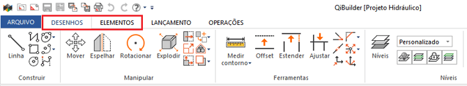 Uma simbologia pode também ser desenhada diretamente na plataforma AltoQi Builder através das ferramentas de CAD existentes nas abas "Desenhos" e "Elementos".