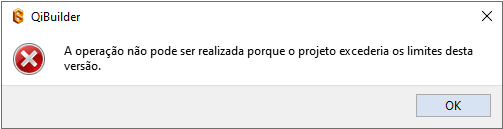 Ao abrir um projeto cuja área total de lançamento ultrapassa a área da aplicação contratada, o Builder exibe a mensagem: "A operação não pode ser realizada porque o projeto excederia os limites desta versão."