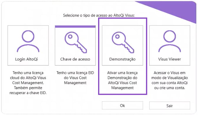 Ativação da versão Demonstrativa do AltoQi Visus Cost Management