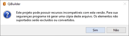 Nessa situação, o projeto somente poderá ser aberto na mesma atualização em que foi salvo ou em uma atualização superior. Ao abrir o arquivo em uma versão mais recente, o Builder cria automaticamente uma cópia de atualização do projeto original.
