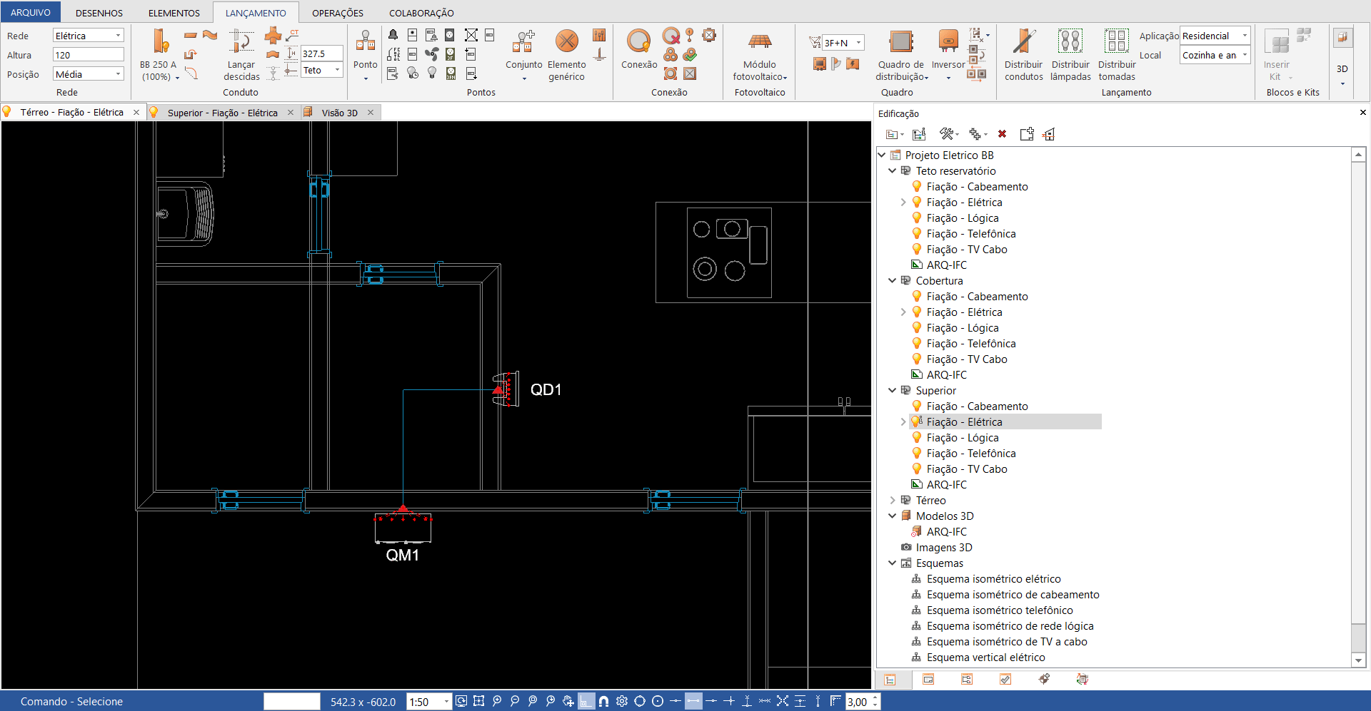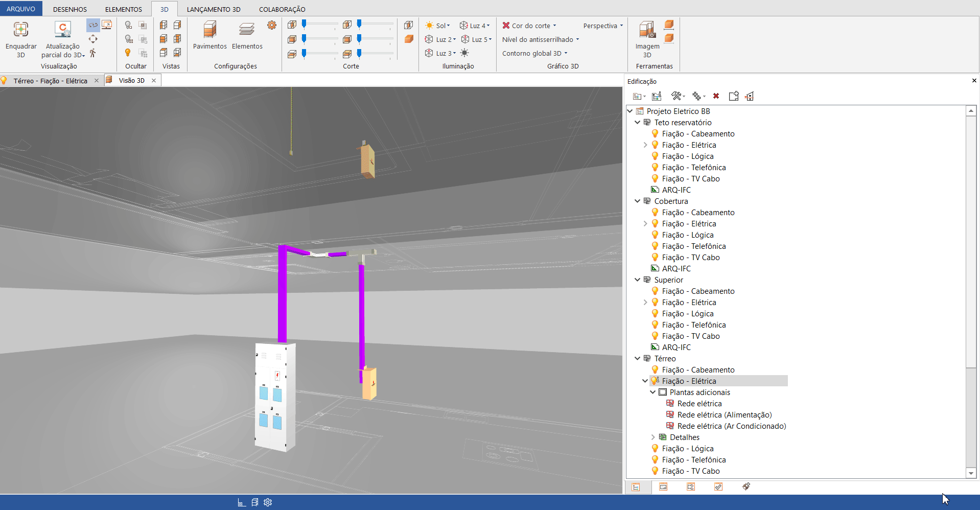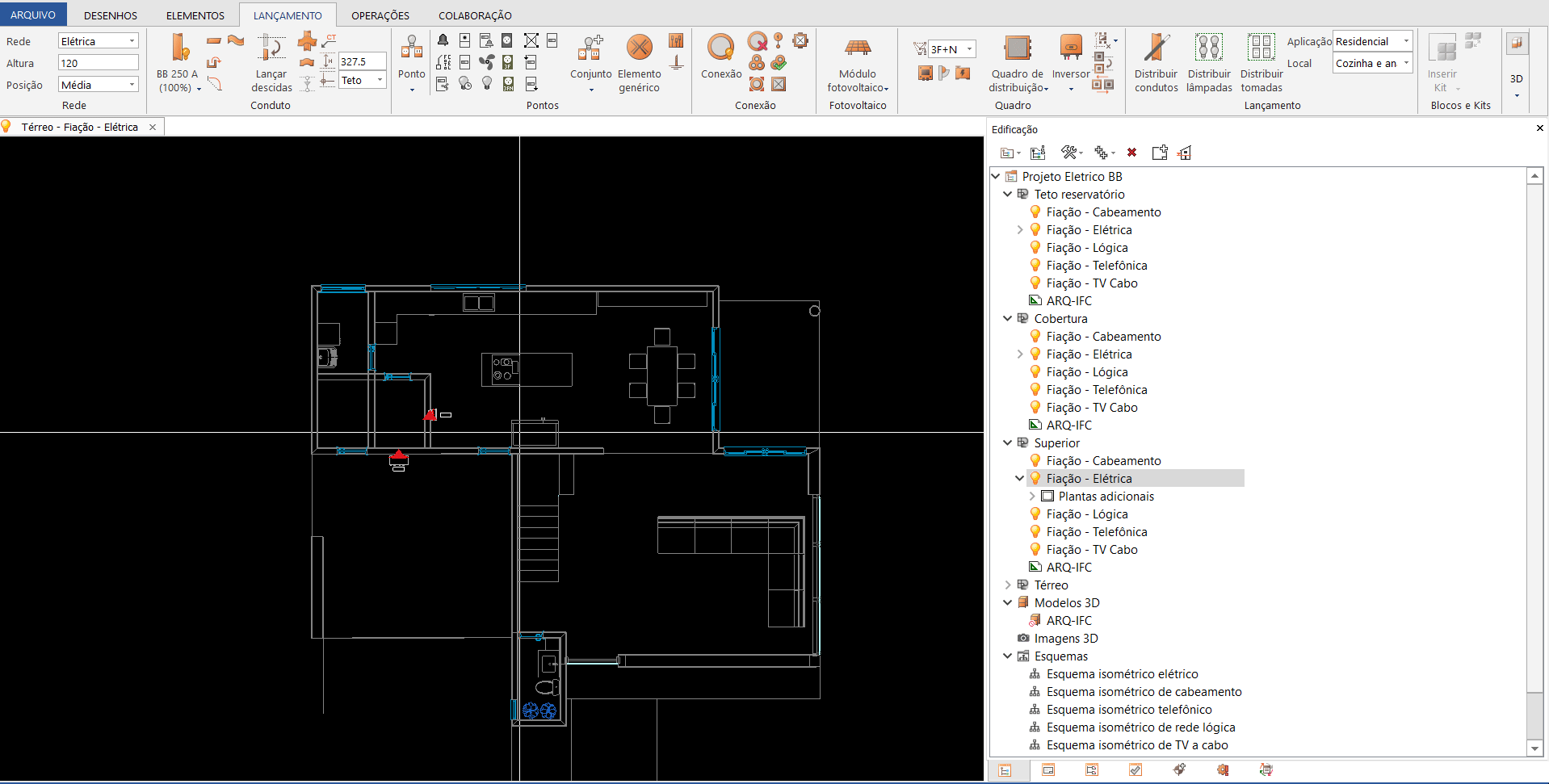 - Abra o Croqui Fiação do pavimento desejado. Em nosso exemplo, iniciaremos pelo pavimento térreo;