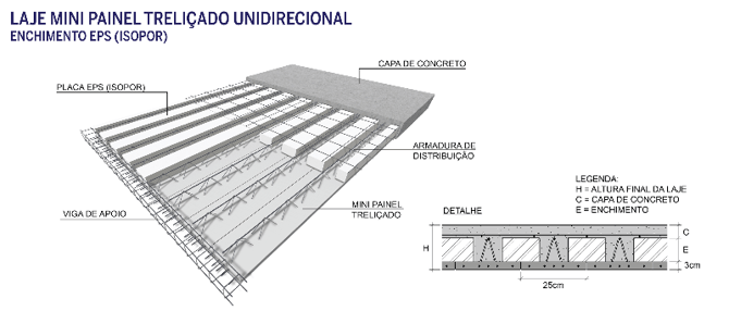 Laje painel maciço com enchimento 1D