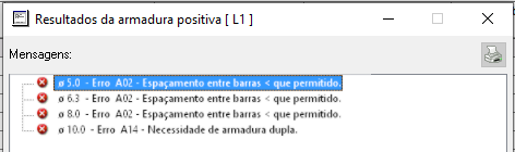 Neste caso, deve-se adotar medidas direcionadas para os erros exibidos. Para mais informações sobre um determinado erro, você pode dar um clique duplo sobre a bitola que apresenta o erro em questão. A página da ajuda referente a este erro se abrirá.