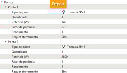 Exemplo 1: Tomadas de uso geral com potências diferentes, posição Baixa