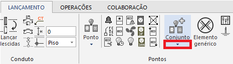 Observação: A utilização do comando Conjunto se aplica caso seja necessário efetuar o lançamento de interruptores (simples/paralelo) com mais de uma tecla, combinação de interruptores com tomadas, etc.