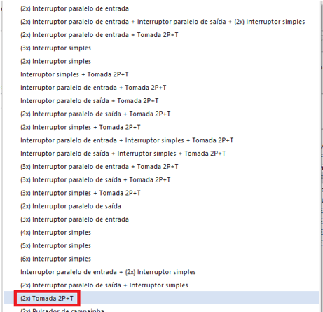 O AltoQi Builder possui em seu cadastro nativo algumas tomadas duplas que podem ser usadas. Caso o usuário deseje usar um conjunto de tomadas que não está cadastrado na aba peças do Builder, sugere-se o seguinte procedimento: