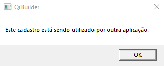 Quando o programa apresenta a mensagem "Este cadastro está sendo utilizado por outra aplicação", deve-se executar o QiBuilder como Administrador.