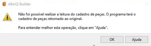 Para entender mais sobre esse aviso e conhecer um método alternativo de solução, você pode acessar o material Como solucionar a mensagem "Não foi possível realizar a leitura do cadastro de peças" apresentada na abertura do AltoQi Builder.