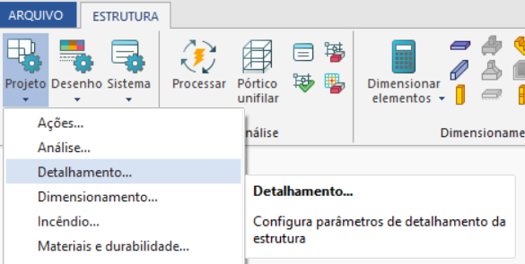Para isso, siga o caminho Estrutura - Configurações - Projeto - Detalhamento.