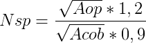Observação: Esta fórmula parte da afirmação da NBR 10897/2014, que diz que a dimensão de um lado do retângulo paralelo aos ramais, que delimita a área de operação, deve ser igual a 1,2 vezes a raiz quadrada da área de operação. Enquanto que os retângulos que formam a área de cobertura de cada chuveiro possuem o lado paralelo aos ramais 0,9 vezes menor que o lado perpendicular aos ramais.