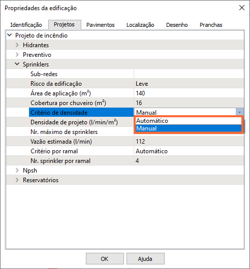 - Como alterar o critério da densidade de projeto dos sprinklers no módulo Incêndio do AltoQi Builder?