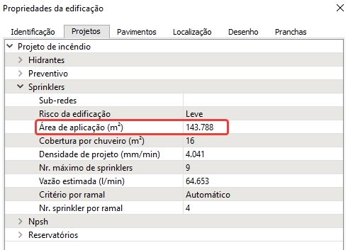 - Como configurar a área de operação da rede de sprinklers para o risco da edificação?