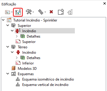 - Para isso, com o projeto de Sprinklers aberto, acesse as propriedades da edificação.
