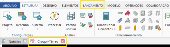 As guias e comandos do Eberick (como estruturas, desenho, lançamento e outros) possuem um comportamento dinâmico. Dessa forma, apenas as ferramentas compatíveis de visualização e edição da janela aberta ficam disponíveis. A inserção de elementos estruturais, em qualquer etapa do projeto, são realizados exclusivamente com a janela de croqui aberta.