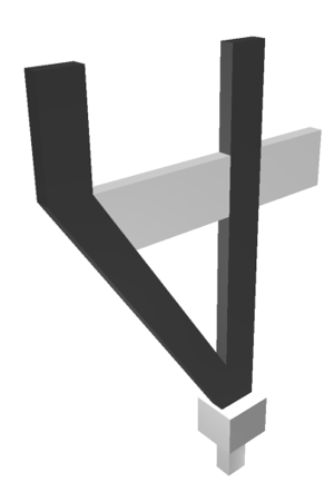 O elemento estrutural inclinado, visto na figura acima, deve ser lançado no AltoQi Eberick como um pilar inclinado. O lançamento deste tipo de elemento é explicado em detalhe no artigo Como lançar e alinhar um pilar inclinado. O lançamento pode ser feito seguindo os procedimentos descritos abaixo: