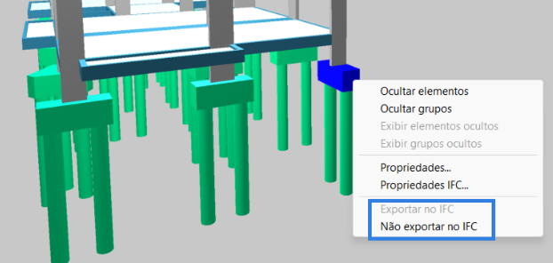 A partir da atualização 2025-02, nas versões Assinatura, é possível definir diretamente no ambiente 3D quais elementos não serão exportados.