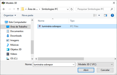 - Na janela Modelo 3D, busque pelo o arquivo IFC desejado salvo em seu computador;
